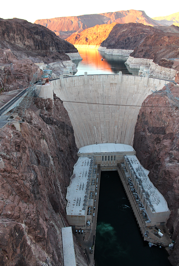 Ryan had the fabulous idea of taking a walk out at the Hoover Dam bypass bridge overlook. It was a beautiful evening to be outside and we caught some burning red sunset light on the mountains and lake. It was Ryan’s first time to the overlook; it’s a pretty sweet vantage point, 900 feet above the Colorado. That would take 7.5 seconds for your spit to hit the river fyi. I just don’t know when to say when…
