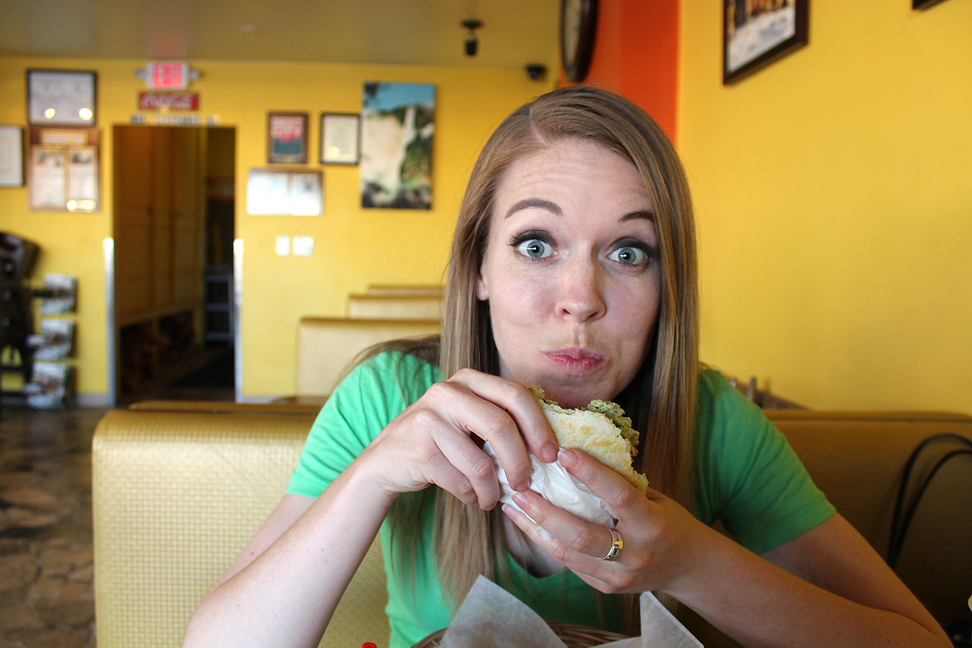 Somehow Eddie discovered that I love mint chocolate, so he brought some dark and mint Ghirardelli chocolate squares with him. Mmm, so nice! He had asked me earlier what types of food I like to eat, I told him I often like to try new and foreign food so we went to Viva Las Arepas, a Venezuelan restaurant. I had not yet tried Venezuelan food and their specialty, as the name implies, are arepas which are stuffed flatbread wraps made out of a maize (corn) dough. They were good! I love trying new foods! 🙂