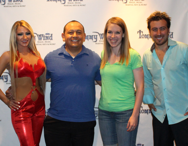 After dinner we went to watch a magician downtown, Tommy Wind. He incorporated music with his magic and his parents and fiancee were all involved with the show, playing music or assisting on stage. There were a lot of families with their kids there, it was fun to see their eyes light up in amazement. 🙂 Afterwards we got a picture with the magician himself and his fiancee/assistant.